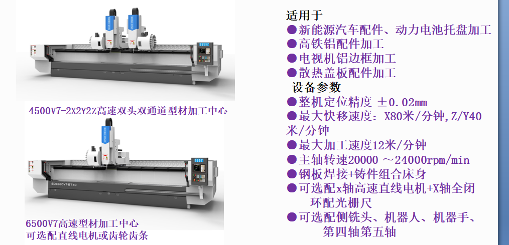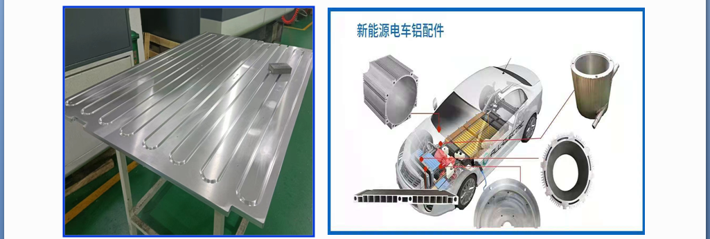 型材加工中心進(jìn)行電池托盤邊梁切削、雕銑等加工
