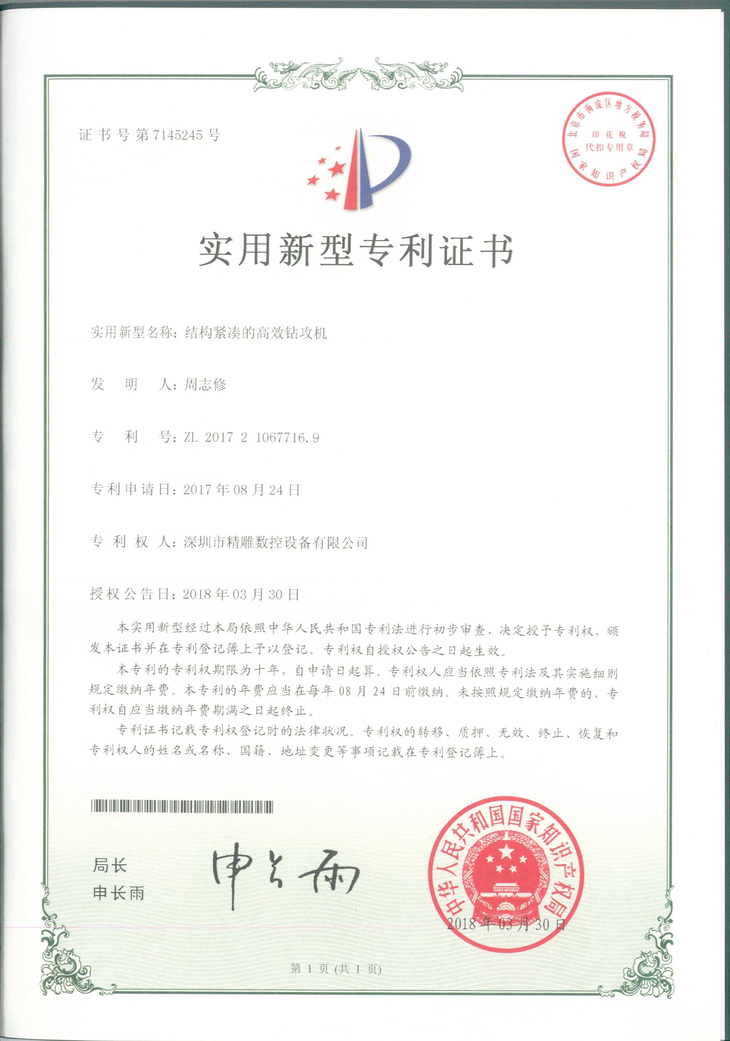 Precision carving machine patent, appearance patent, utility model patent