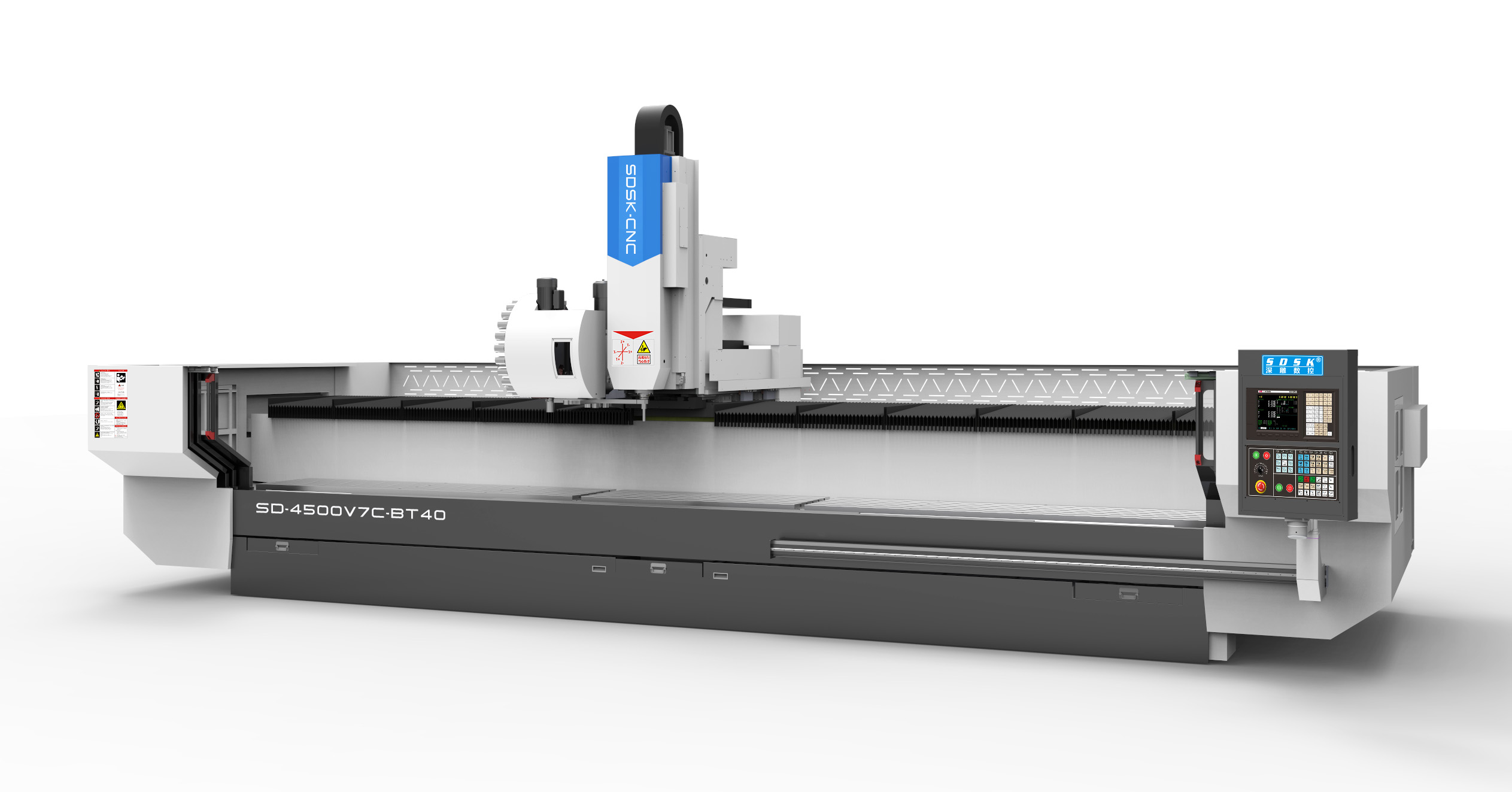 1. The SD4560V7C-BT40 model series is a large-scale profile machining center specially designed for customers; Sky track structure; The design of the motion mechanism on the top of the crossbeam is lightweight, convenient, and easy to clean. The Y-axis head moves forward and backward, the X-axis head moves left and right, and the Z-axis spindle moves up and down< Br/>