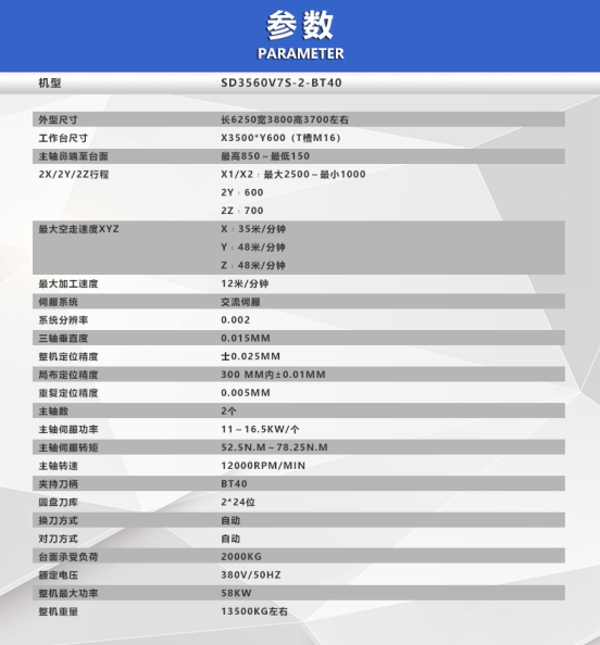 天軌式雙頭雙通道加工中心詳細(xì)參數(shù)